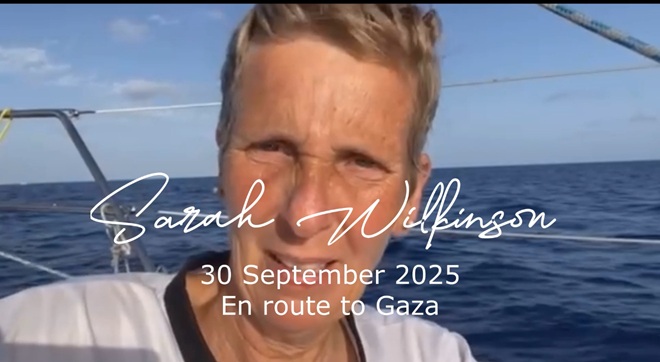 This is the last video from my sister, my friend, my mentor Sarah Wilkinson @swilkinsonbc co-founder of @RebuildGaza24 and roving reporter for @MENAUncensored. She has stood with Palestine for over 50 years, and now she sails with the Freedom Flotilla, entering the red zone the last stretch before Gaza. Her intensity is unmatched, and the @MENAUncensored team is right behind her. Please keep Sarah in your prayers. Share her words, share her courage, let the world know: Gaza is not alone. Palestine has always been, and will always be, Palestine.